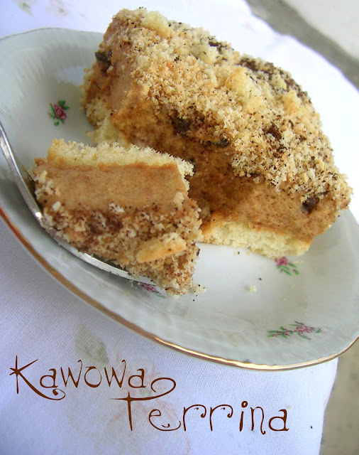 powierzchnię. Obłożyć pozostałymi biszkoptami lub pokruszyć na górę biszkopty i posypać kawą.